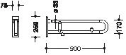Hewi 801 E-Dreh-Stützklappgriff 801.50.51099 850 Mm, Reinweiß, Spül-/Funktionstaste, Gelber Ring