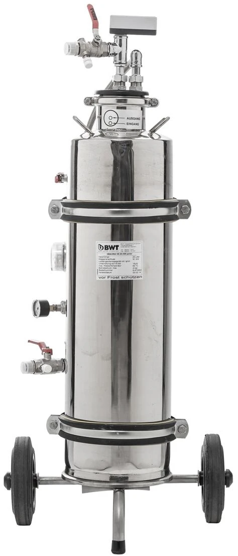 - jedoch darf die Harzfüllung der dafür benutzten VE-Patrone nicht mehr zum füllen mit Frischwasser verwendet werden. Die Anlage ist auf einer Sackkarre montiert