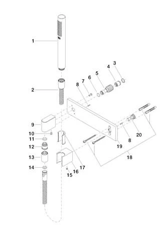 - Stabhandbrause mit Antikalk-System und Rückflussverhinderer