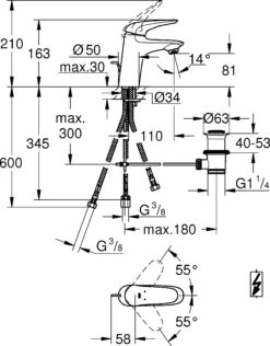- schwenkbarer Rohrauslauf, Schwenkbereich 150°