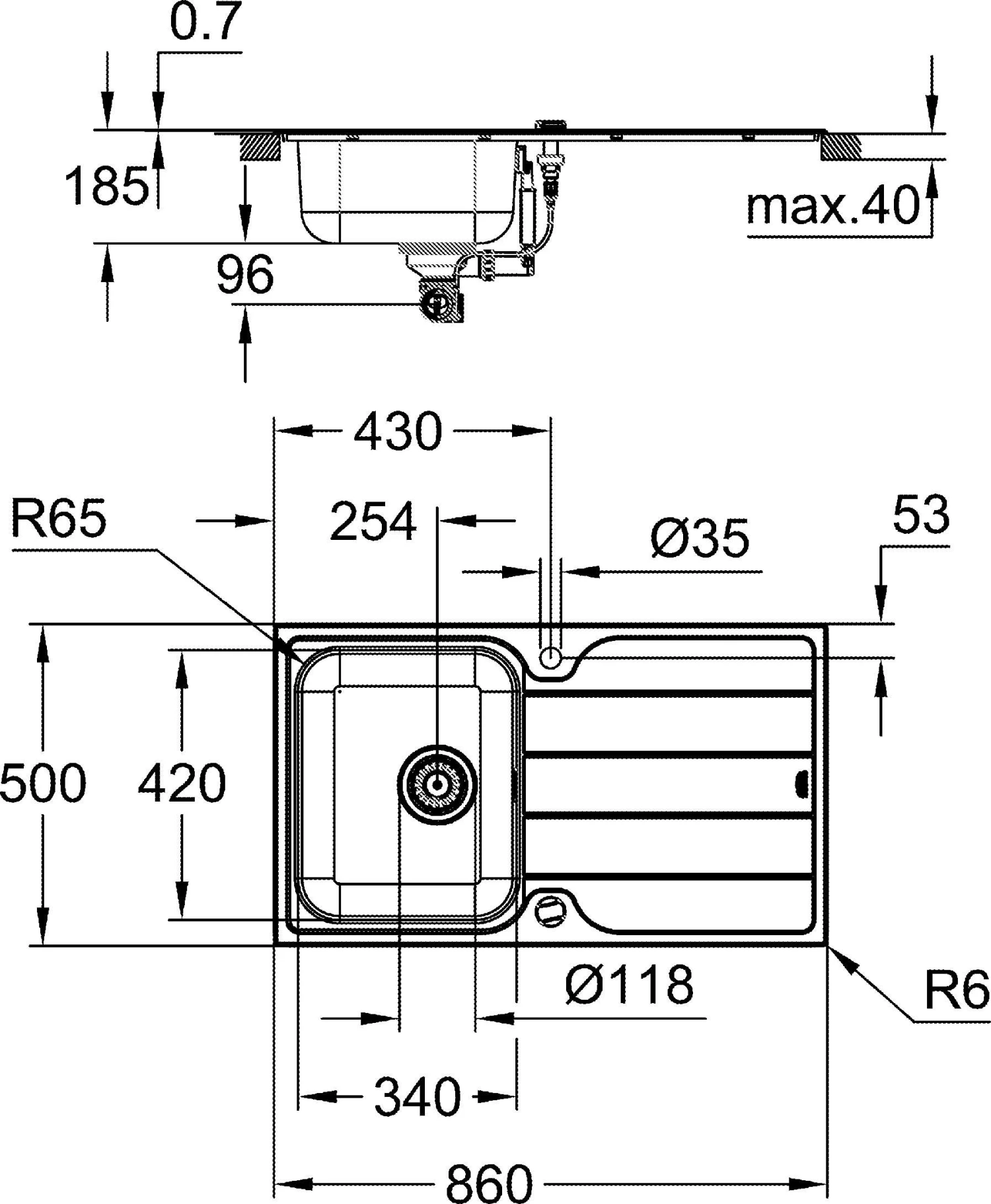 - bestehend aus: Edelstahlspüle mit Abtropffläche (31 571 SD0)