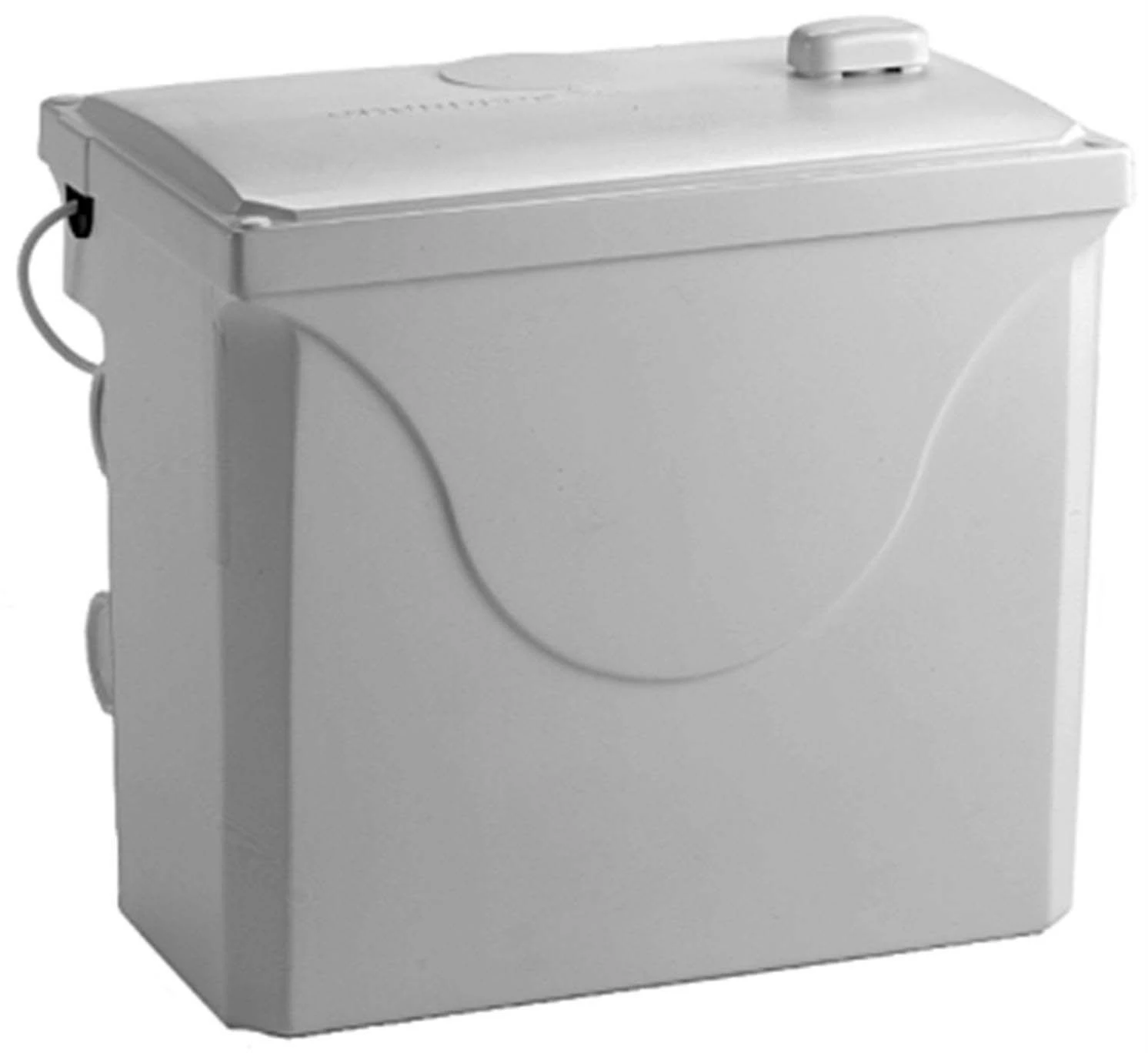 Grundfos Hebeanlage Liftaway C 40-1, ohne Pumpe Schmutzwasserhebeanlage in Unterflurauf- stellung. Installationsfertig zum Einbau einer Pumpe vom Typ KP150/KP250, Ausführung nach EN 12050-2 Vormontierter, weißer Kunststoffbehälter für Bodenaufstellung oder Wandbefestigung, mit erforderlicher Verrohrung, Schwimmerschalterführung und Rückschlagklappe. Druckstutzen mit flexiblem Übergangsstück wahlweise rechts oder links für Druckleitung 40 mm. Be- und Entlüftung über Aktivkohlefilter mit Überlaufsicherung. Adapter für direkten Waschmaschinenanschluss. Abmessungen: L x H x B = 405 mm x 275 mm x 340 mm Nettogewicht ohne Pumpe: 2.5 kg 3 x Durchmesser 40 mm seitlich und 1 x Durchmesser 40/50 mm oben.