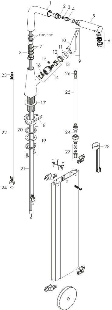 - Schwenkbereich 110° / 150°