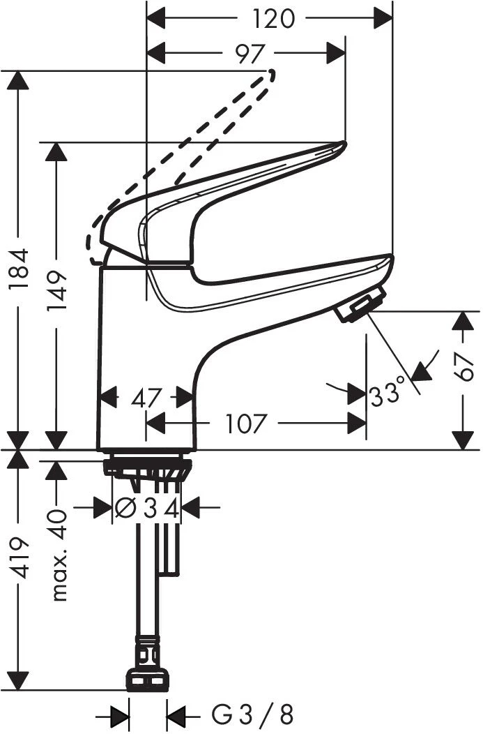 | Aufbauhöhe Unterkante Hahnauslass | 70 mm |