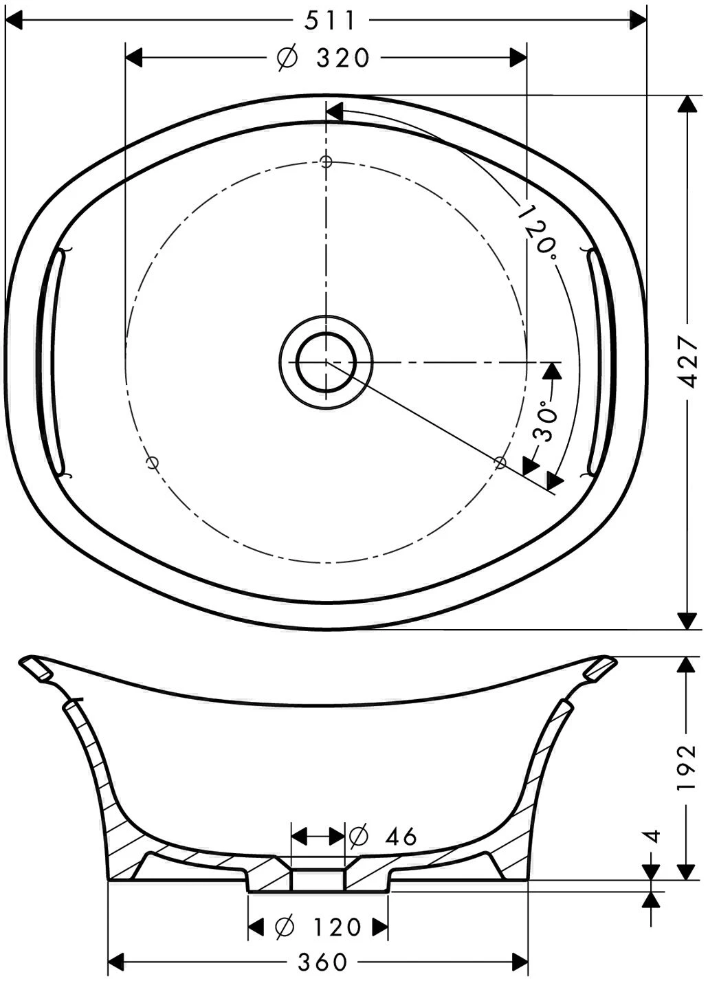 hansgrohe Waschschüssel Axor Urquiola rund 500mm Waschschüssel 500mm, Aufsatzwaschbecken, aus Mineralguss, nur in Verbindung mit Waschtischarmaturen ohne Zugstange, empfohlenes Ablaufventil #50001000