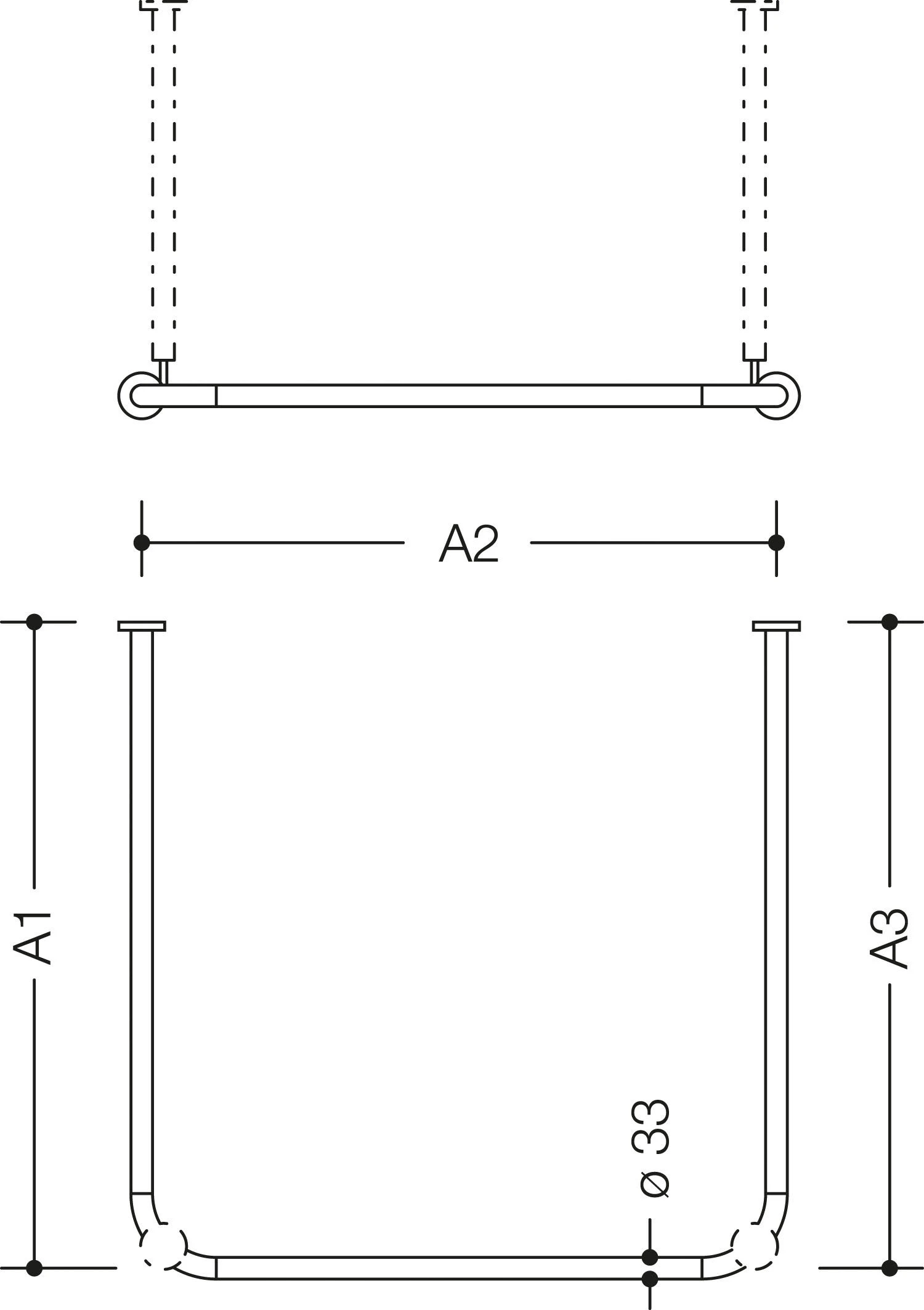- Stangen ø 33 mm