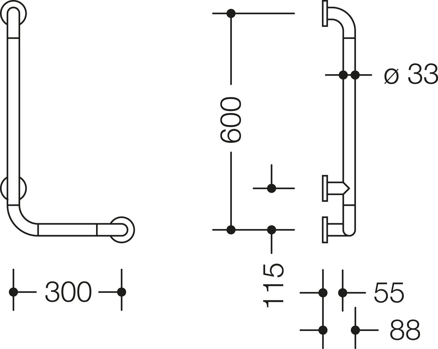 - Montage an der Wand mit Befestigungsmaterial von HEWI
