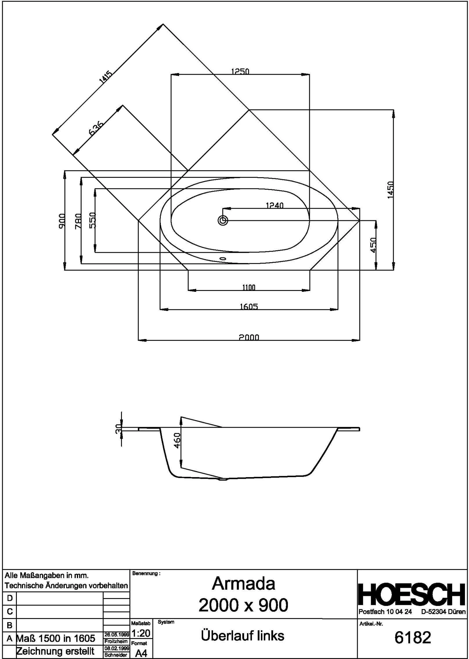 Hoesch Armada 6 Eck Badewanne 6182.010