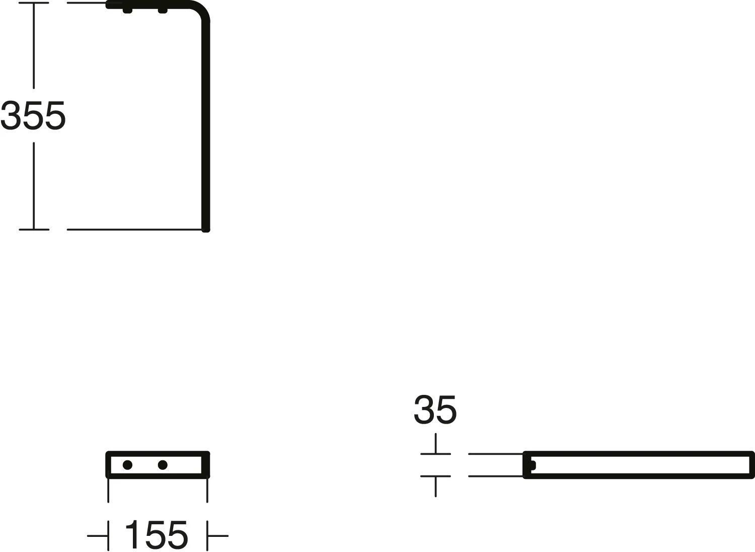 - 355 x 35 x 155 mm, chrom