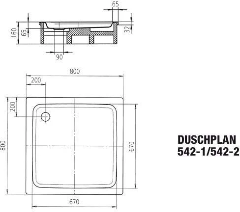 - Kaldewei DUSCHPLAN Duschwanne, 3,5 mm Stahl-Email, hergestellt aus Stahl 2,9 mm +/- 0,14 mm, Modell- Nr. 542, 80 x 80 x 6,5 cm, Gewicht: 19 kg, Außenform: Quadrat, Ablauf: d 9 cm,