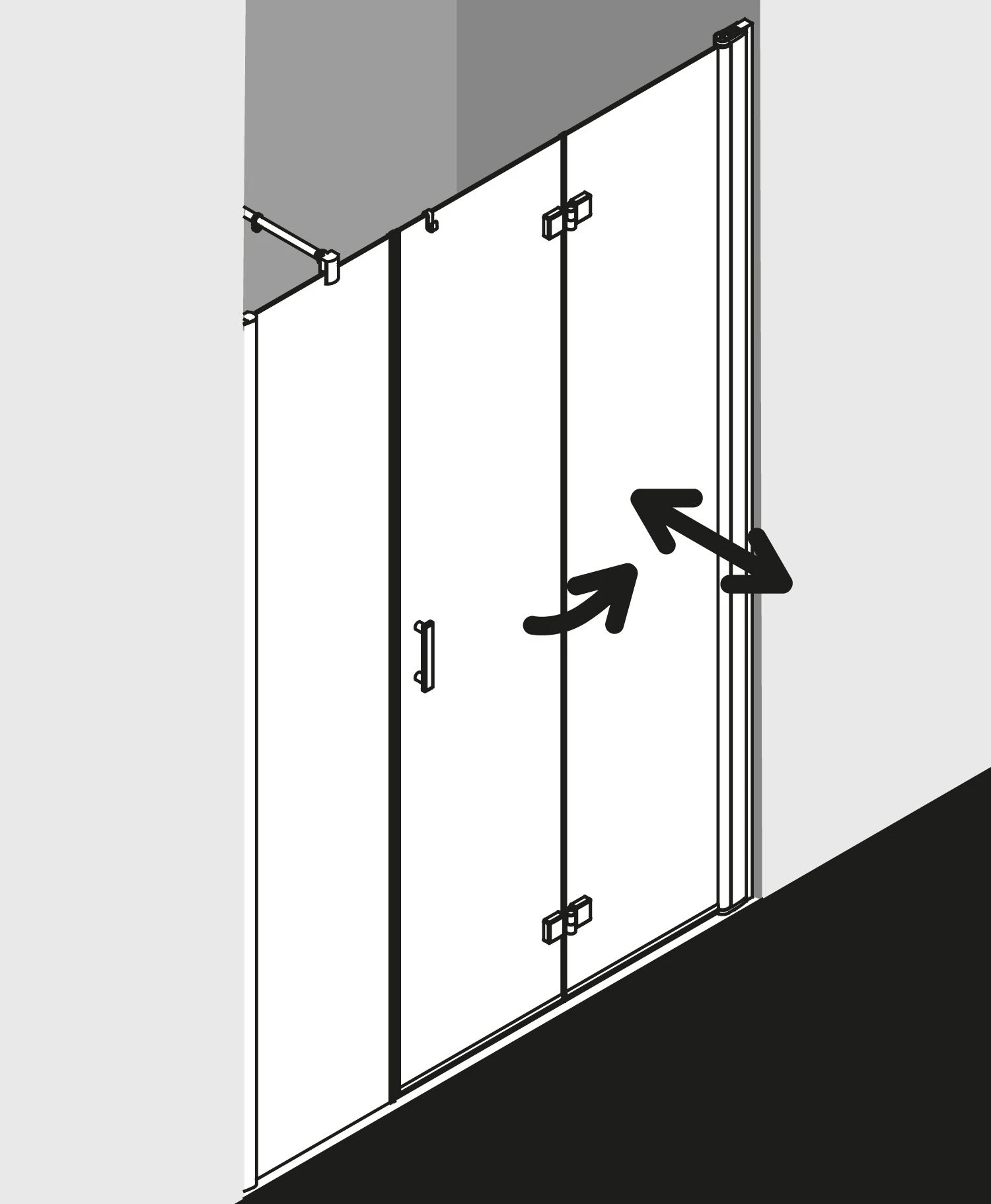 - mit zwei Glasflügeln – im Wandgelenkprofil 90° nach innen und außen schwenkbar