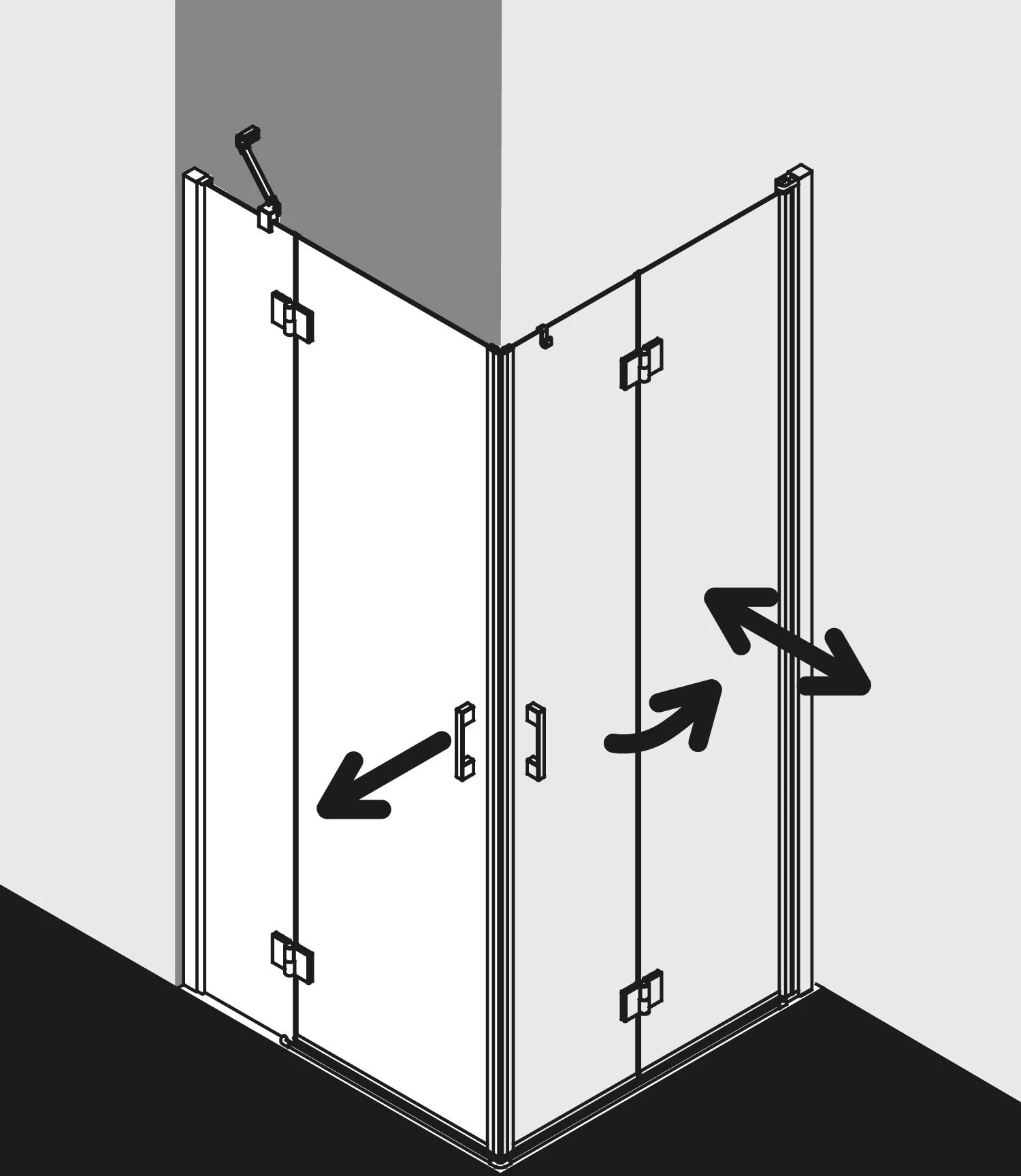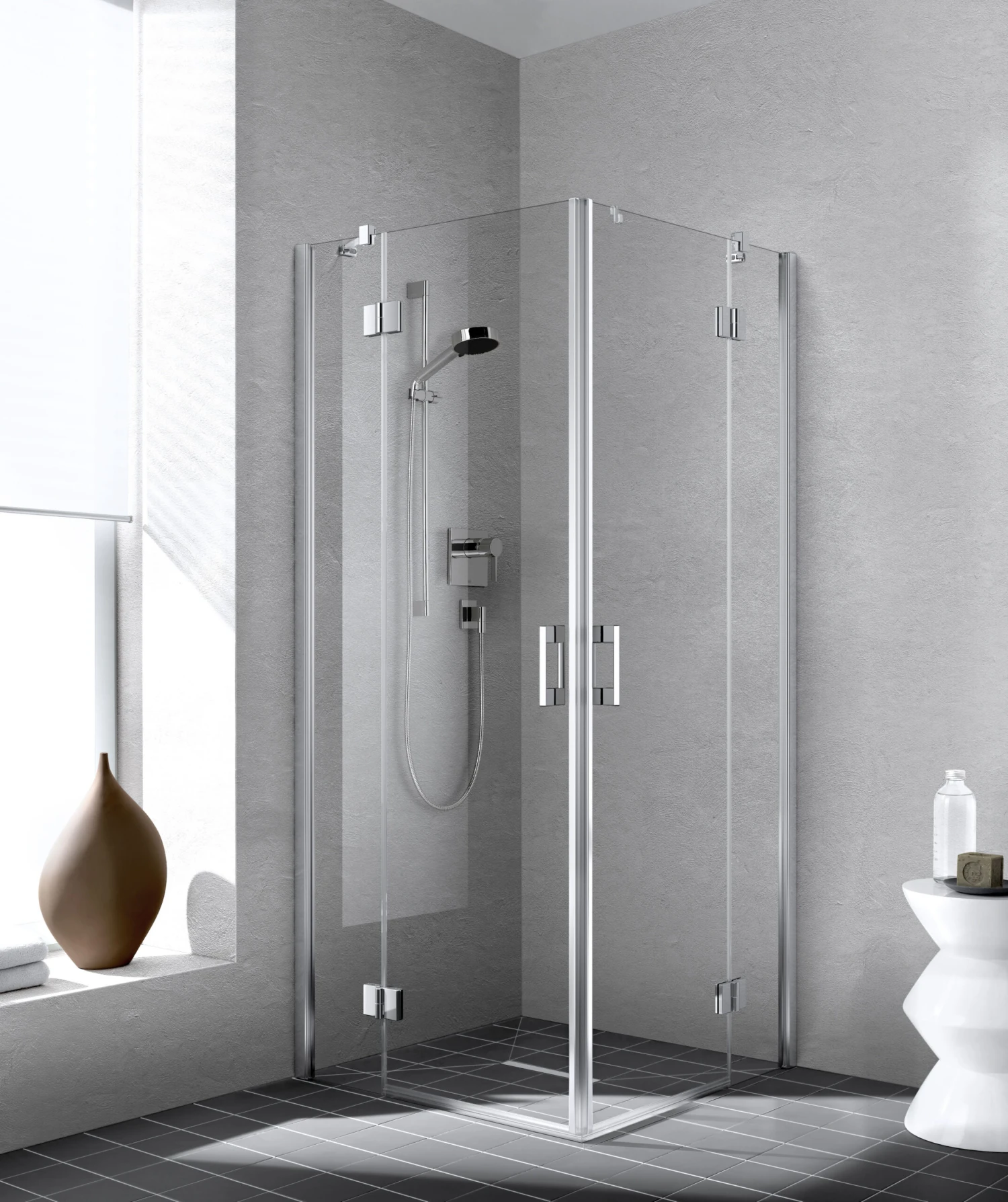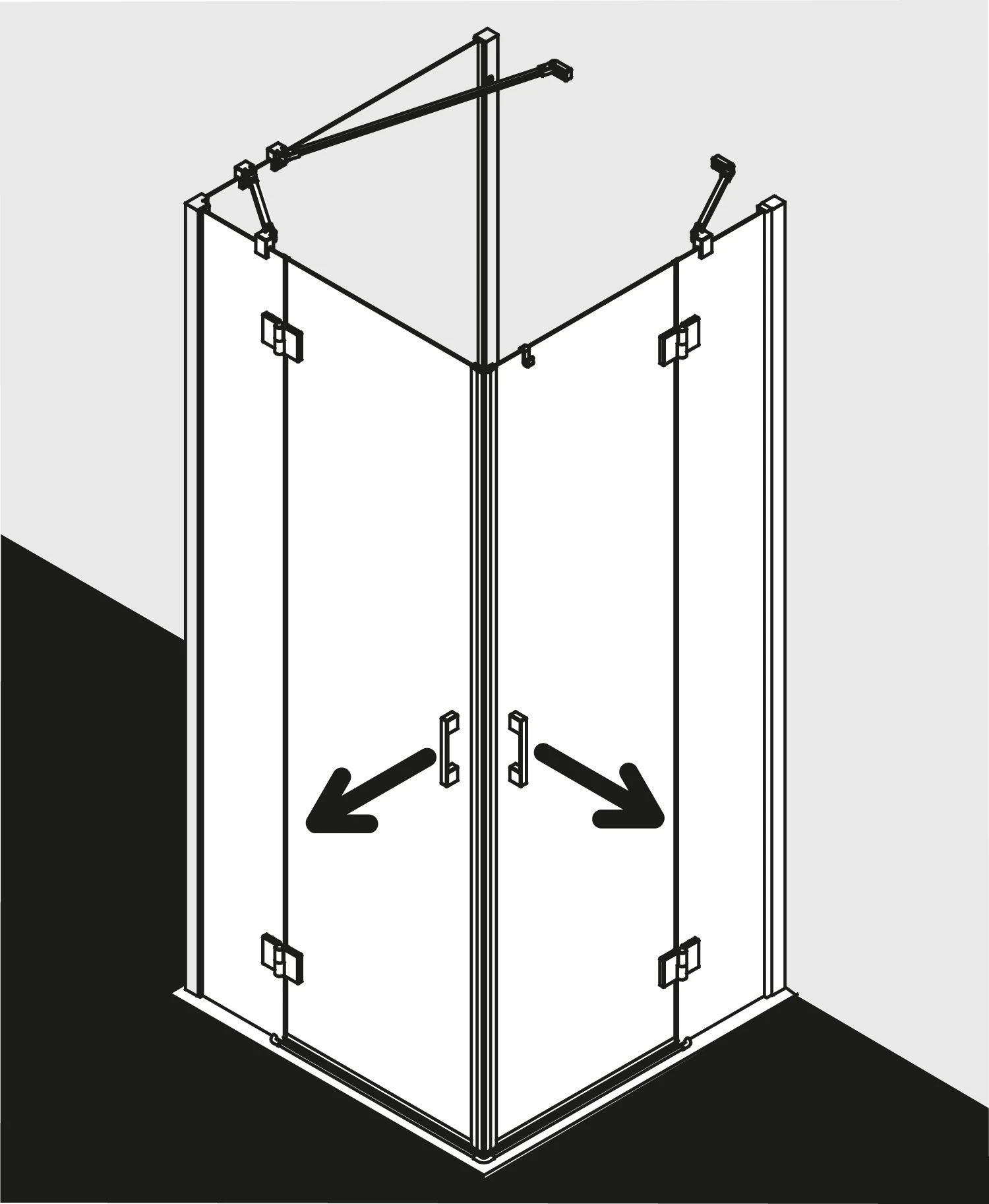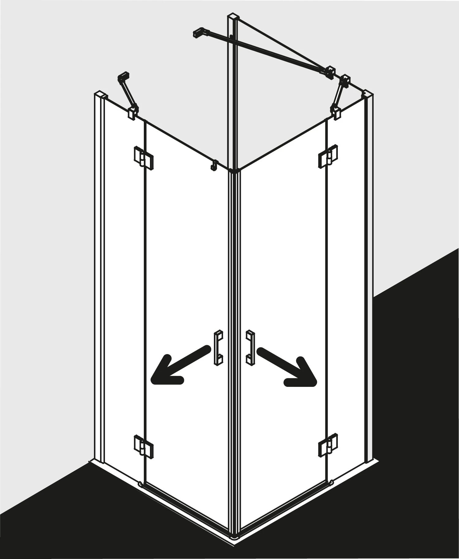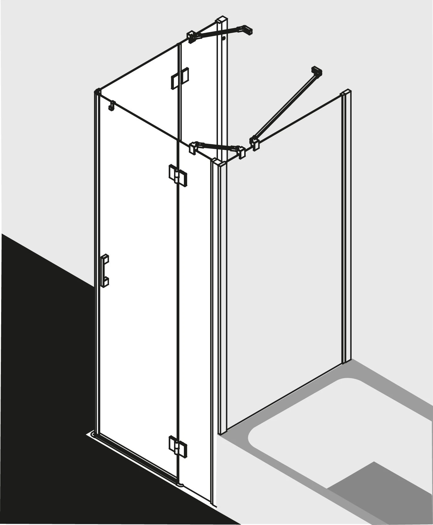 - teilgerahmter Eckeinstieg mit zwei Glasflügeln