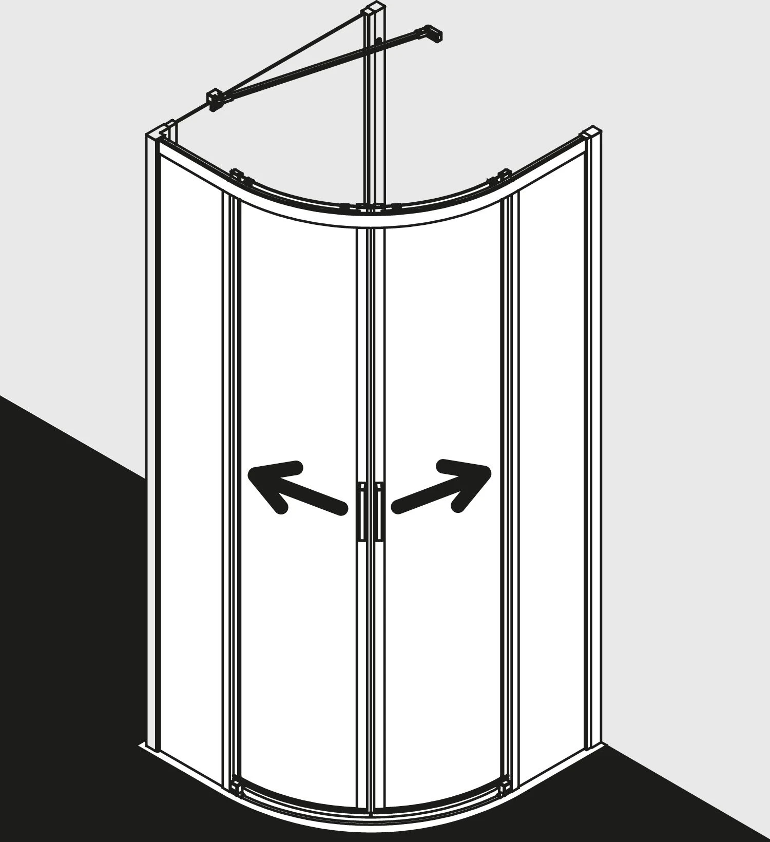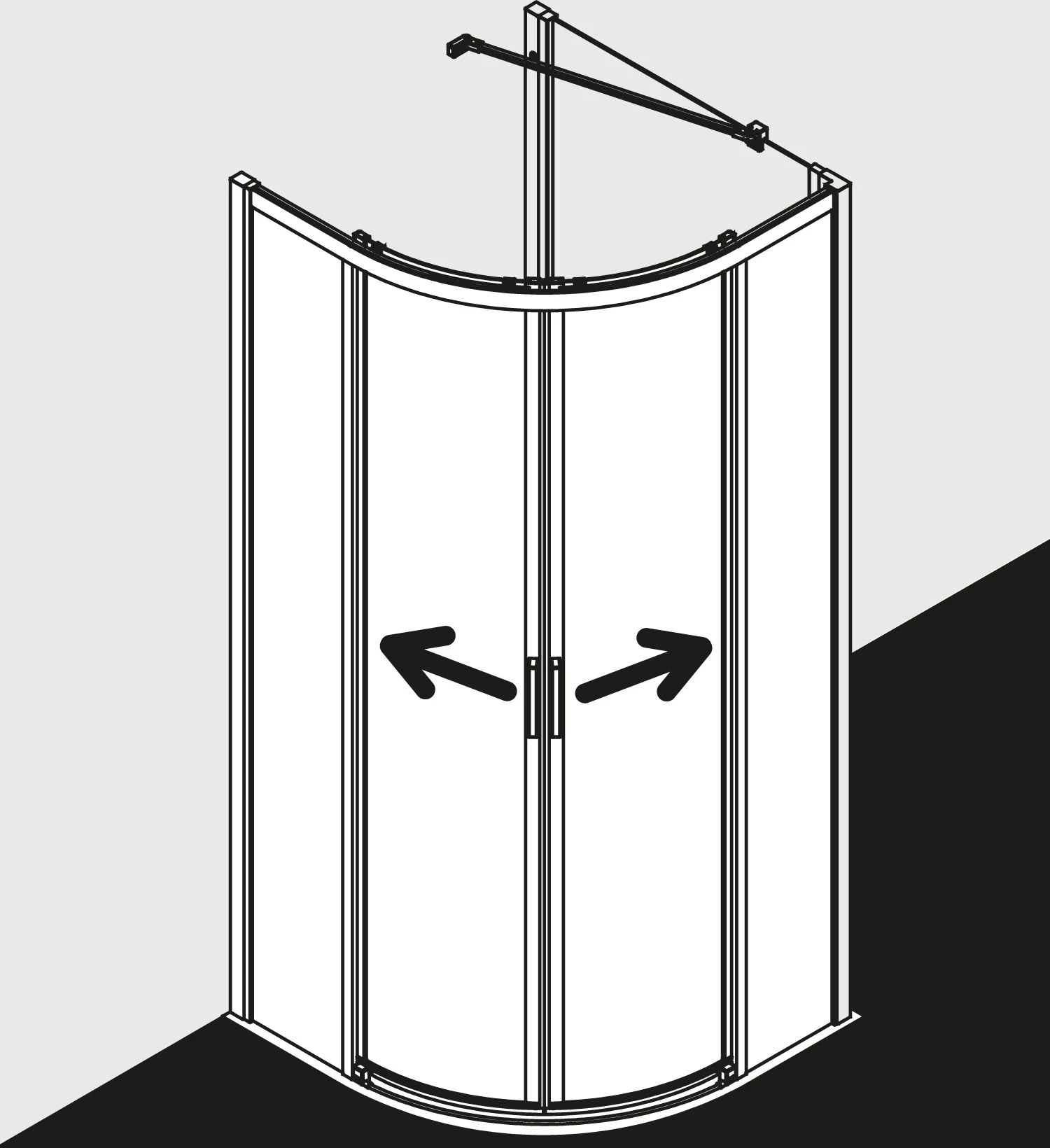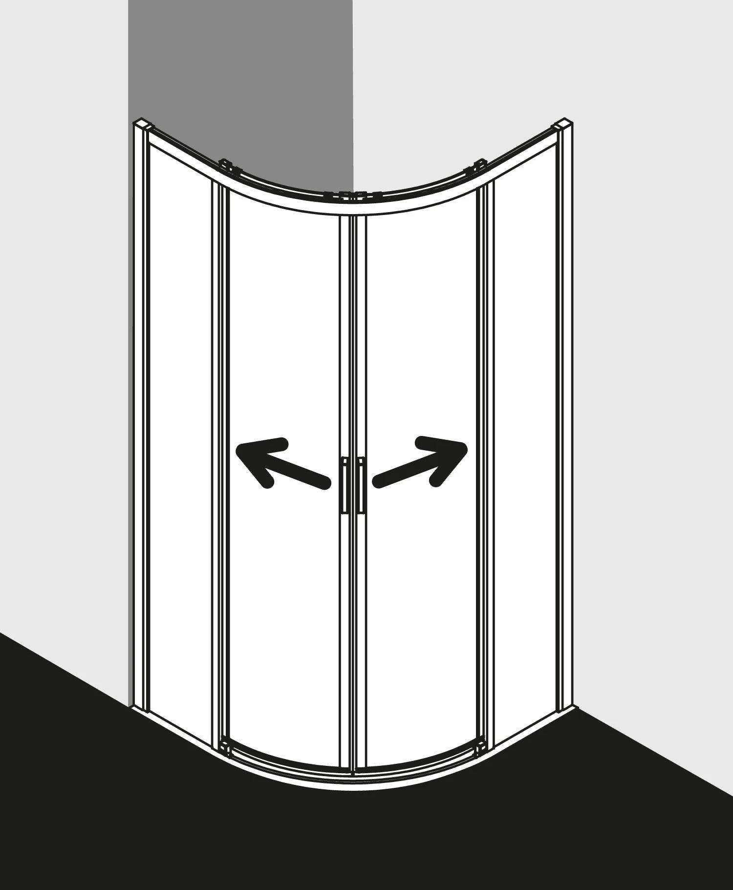 - teilgerahmte Viertelkreis-Duschkabine mit zwei Gleittürsegmenten und zwei Festfeldern