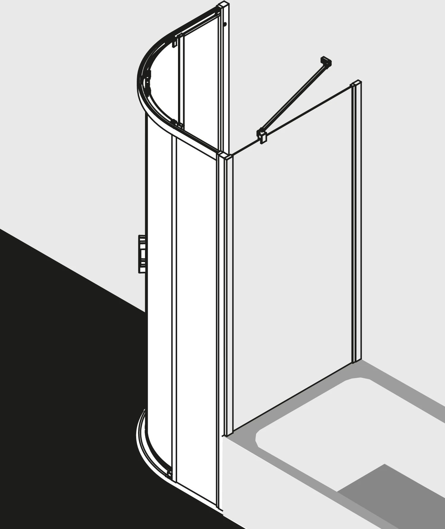 Kermi Liga Viertelkreis-Gleittür bodenfrei mit 2 Festfeldern LIC5010020VAK