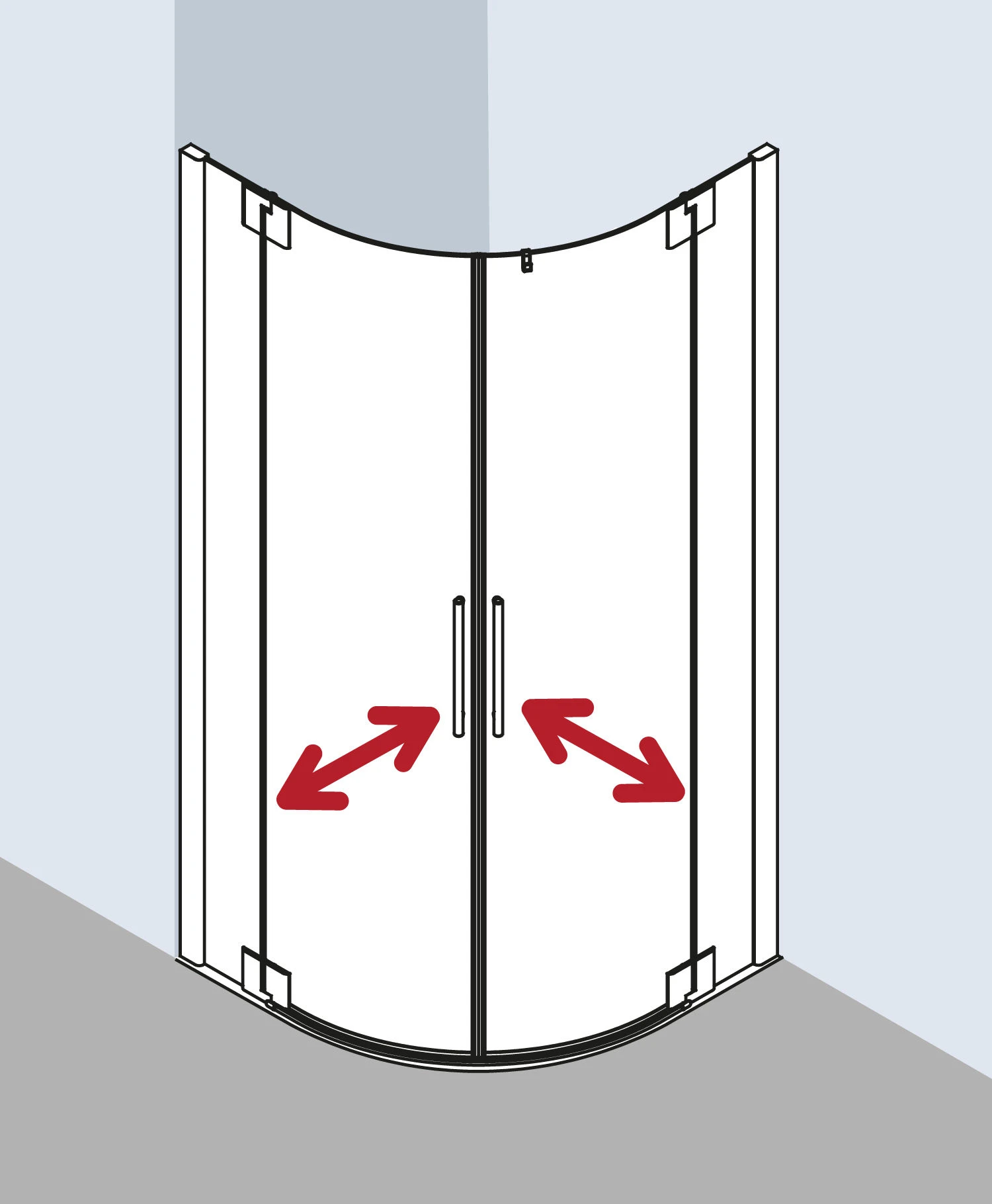 - teilgerahmte Viertelkreis-Duschkabine mit zwei Glasflügeln