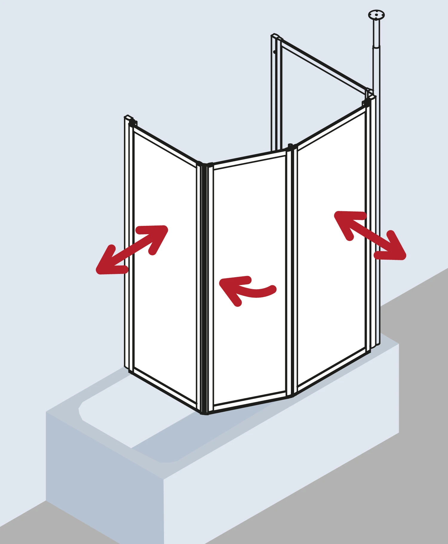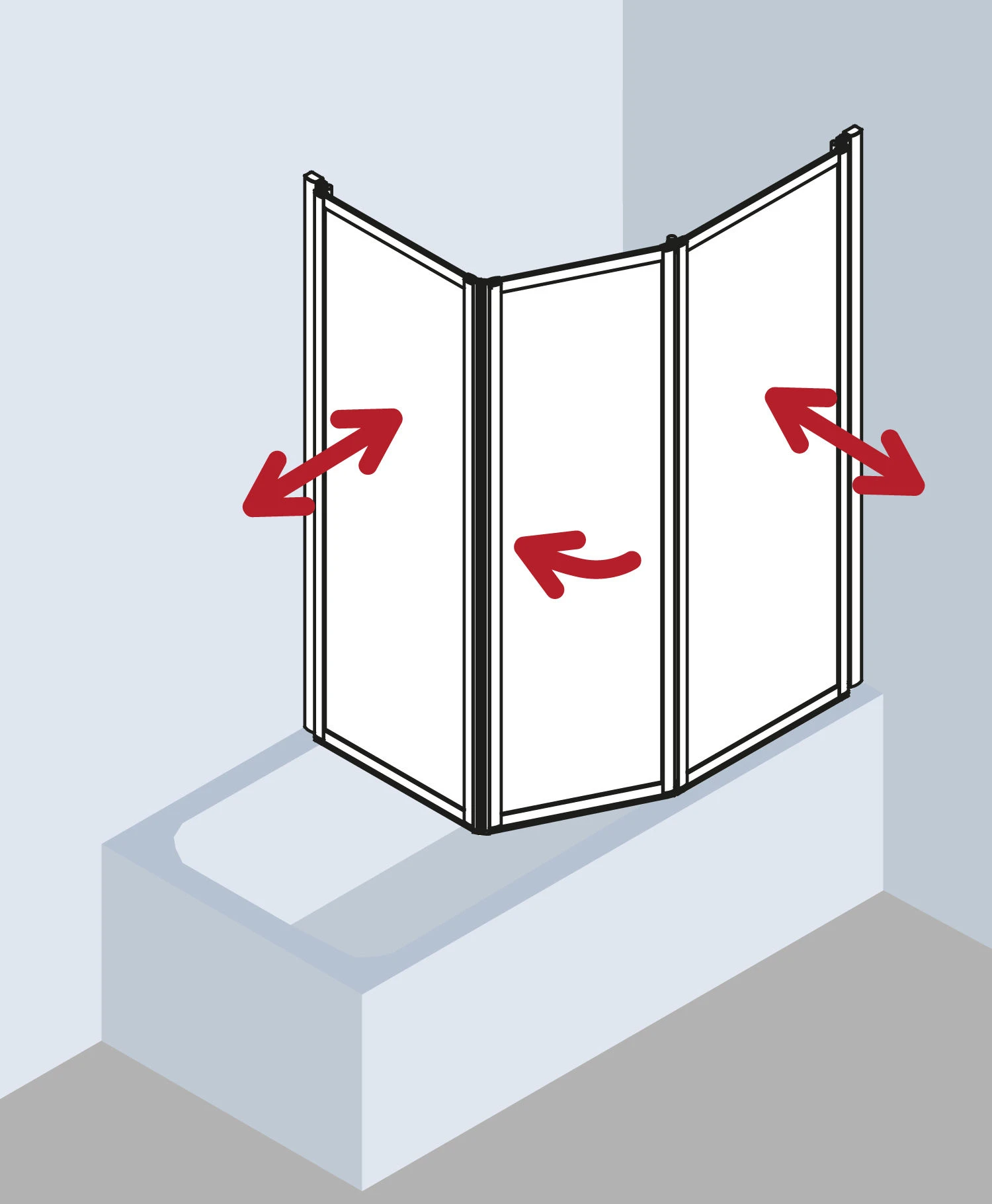 - bestehend aus Faltwand 2-flügelig auf Badewanne und Faltwand 1-flügelig über Badewanne mit Magnetverschluss