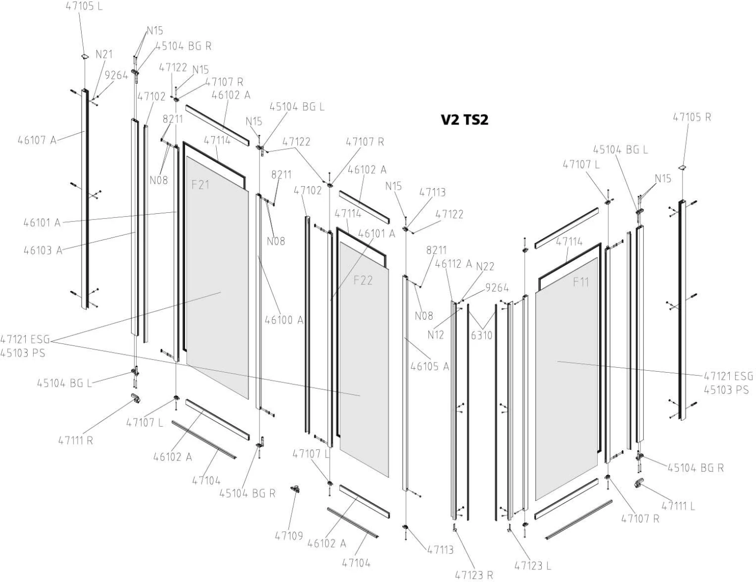 - zum Einbau auf oder über der Badewanne und kombinierbar mit V2 TWD Seitenwand mit Deckenstütze