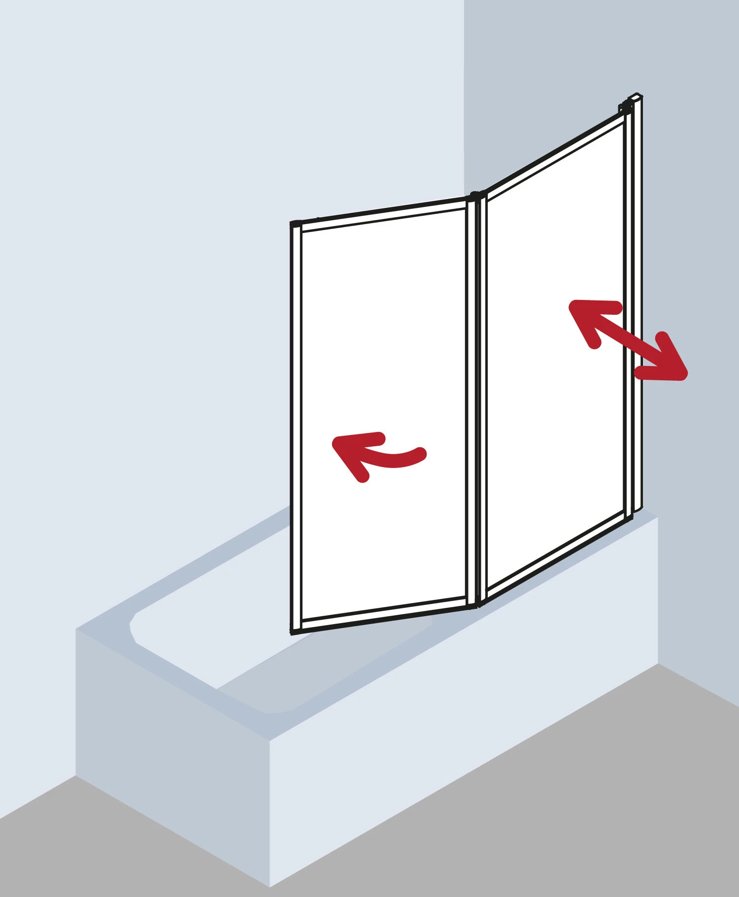 - mit zwei Flügeln – im Wandprofil 90° nach innen und außen schwenkbar