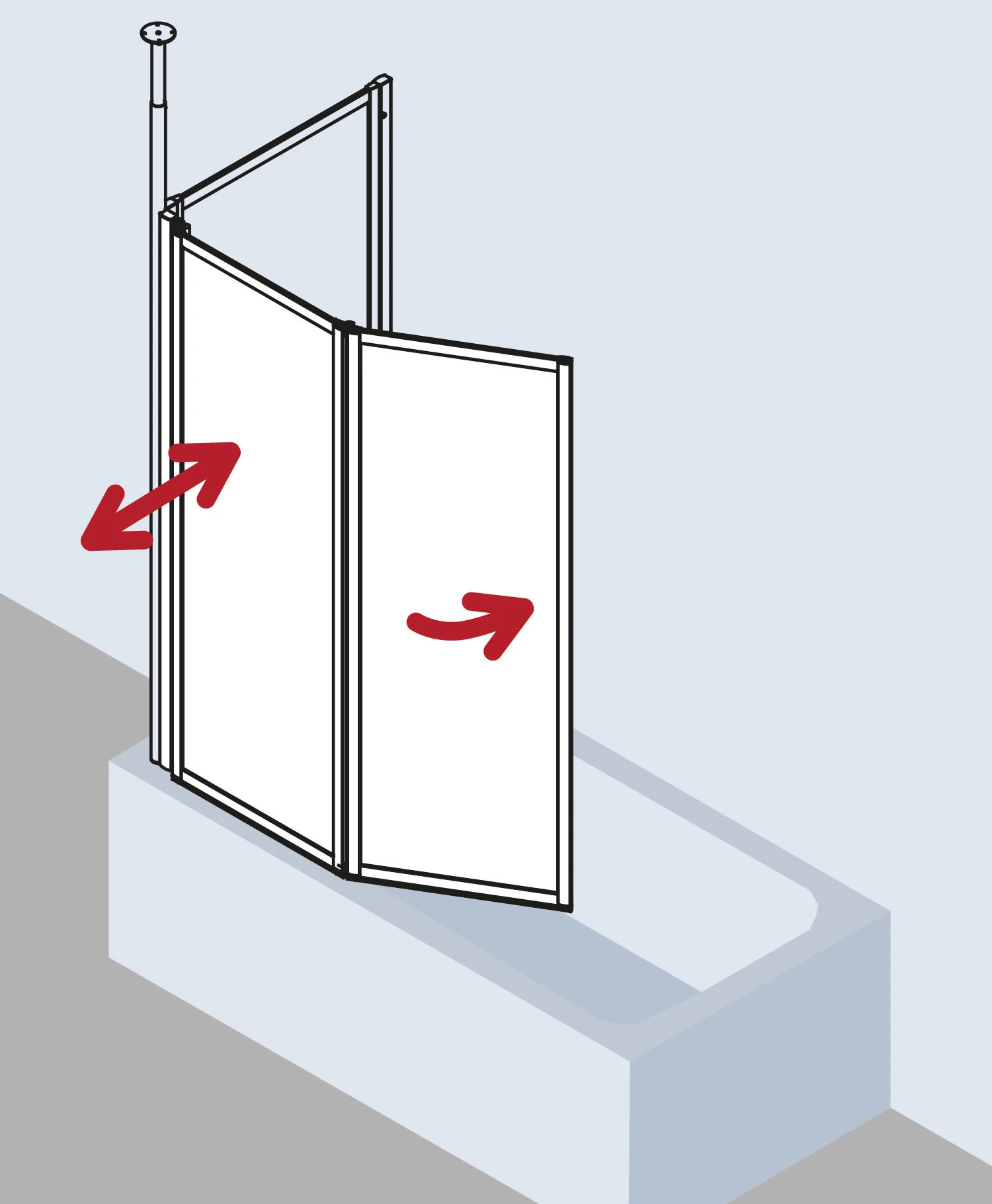 - mit zwei Flügeln – im Wandprofil 90° nach innen und außen schwenkbar