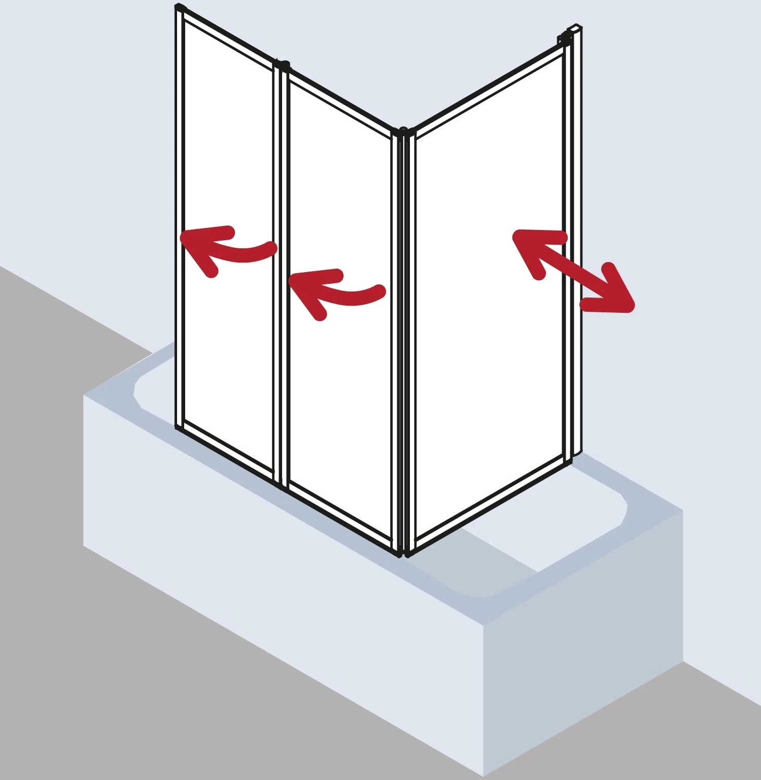 - mit drei Flügeln – im Wandprofil 90° nach innen und außen schwenkbar