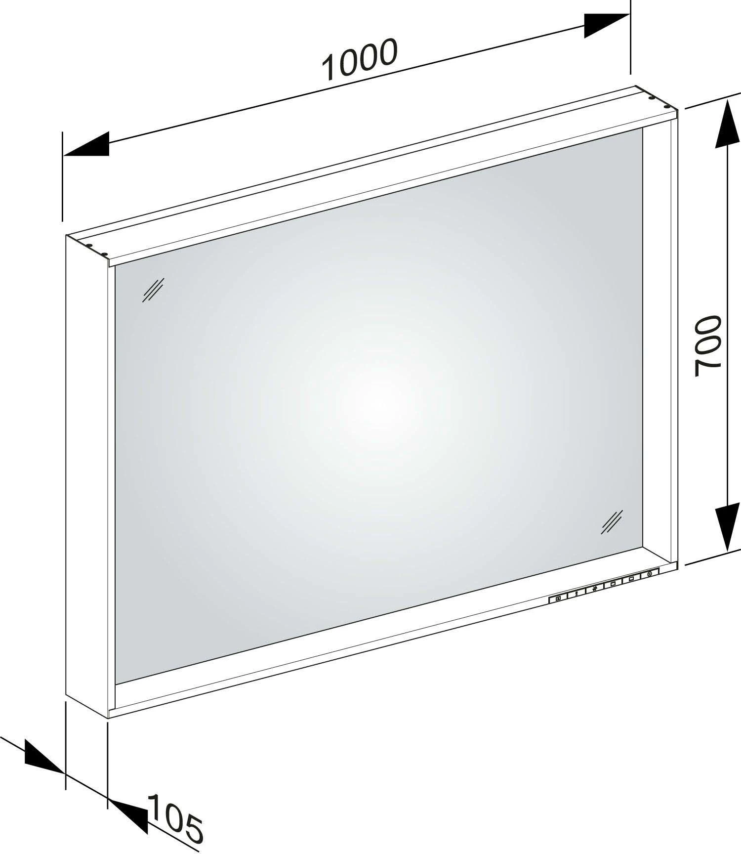- mit Spiegelheizung mittig platziert