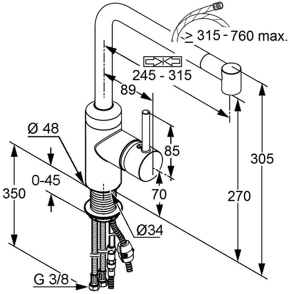 - schwenkbarer (220°), herausziehbarer Teleskopauslauf