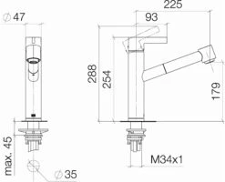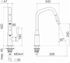 Dornbracht Elio Spültisch-Einhebelmischer 33800790-06 Griff Rechts, Ausladung 235 Mm, Platin Matt