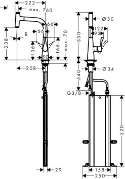 Hansgrohe Metris Select M7115-H240 Küchenarmatur 73802800, Edelstahl-Optik, Ausziehb. Auslauf, SBox