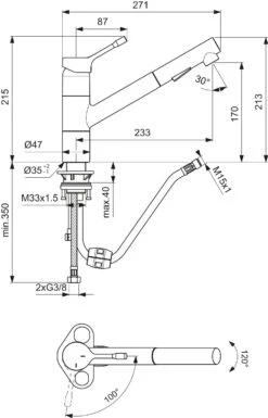 Ideal Standard CeraFlex Küchenarmatur BC137AA Schwenkbar, Ergonomischer Langhebel 132 Mm, Verchromt