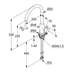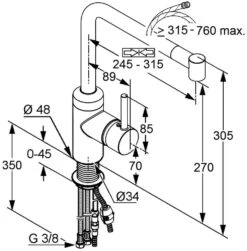 Kludi Steel Küchenarmatur 44851F860 Schwenkbarer Auslauf 110°, Herausziehbar, Edelstahl Gebürstet