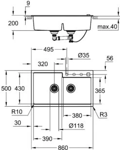 Hansgrohe Einbauspüle 43356170 750x490mm, Haupt- Und Zusatzbecken, 840 X 480 Mm, Graphitschwarz