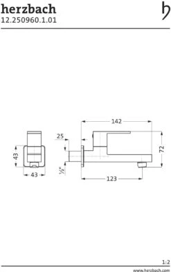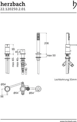 Herzbach Nano Wannen-Dreiloch-Armatur 22.120250.2.01 Fliesen-/Wannenrandmontage, Ohne Auslauf, Chrom