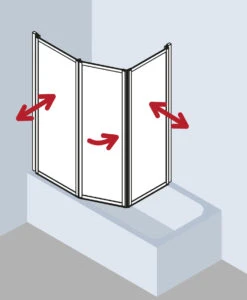 Kermi Vario 2000 Faltwand 2-/1-flügelig V2TS2075141UK 74-76,3x140cm, Silber Mattgl., ESG SR Opaco