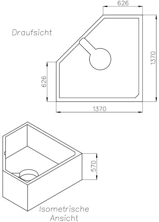 - 140x140cm, Eckwannenträger, Höhe 57cm