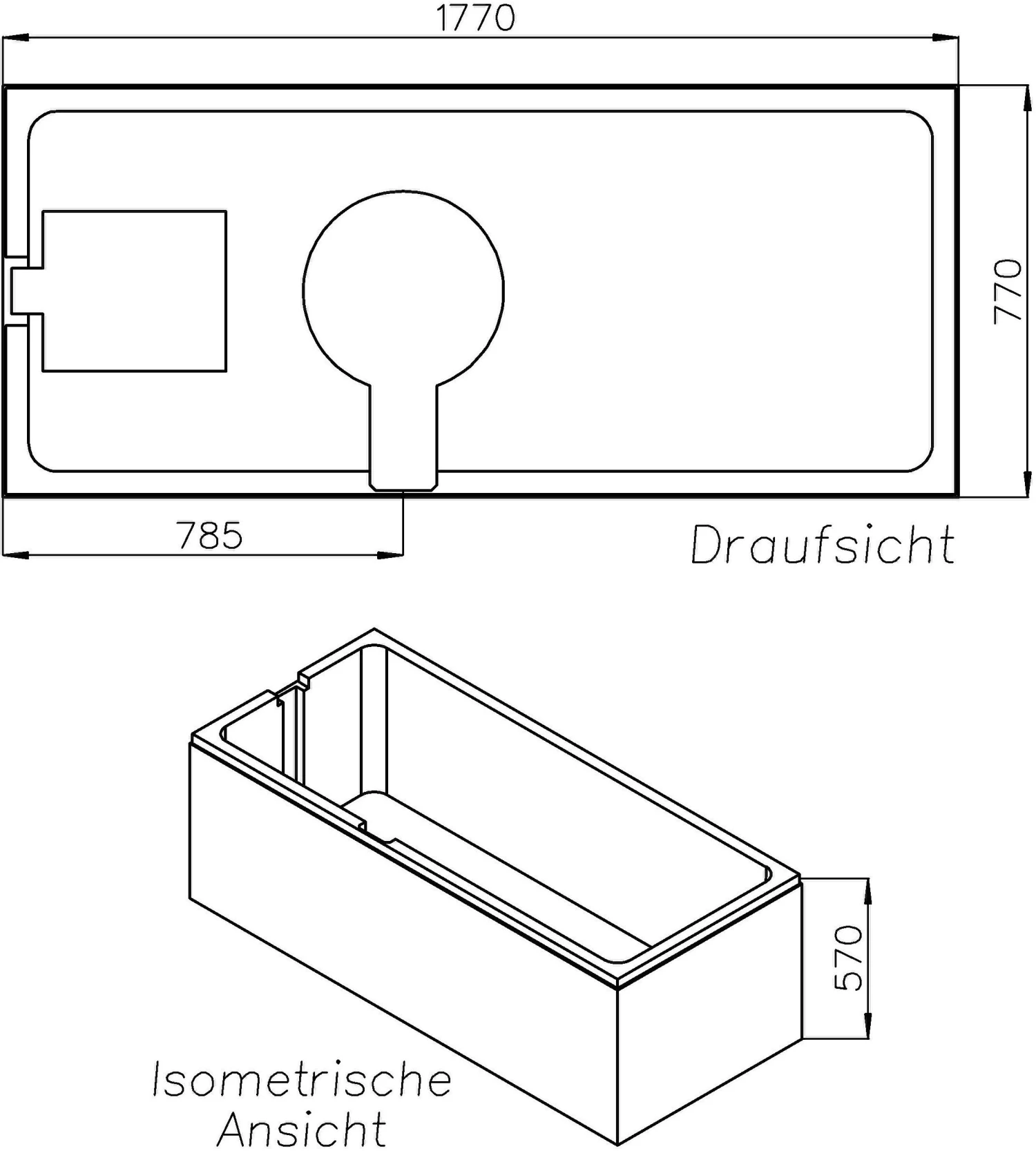 - 180x80cm, Überlauf hinten, Höhe 57cm