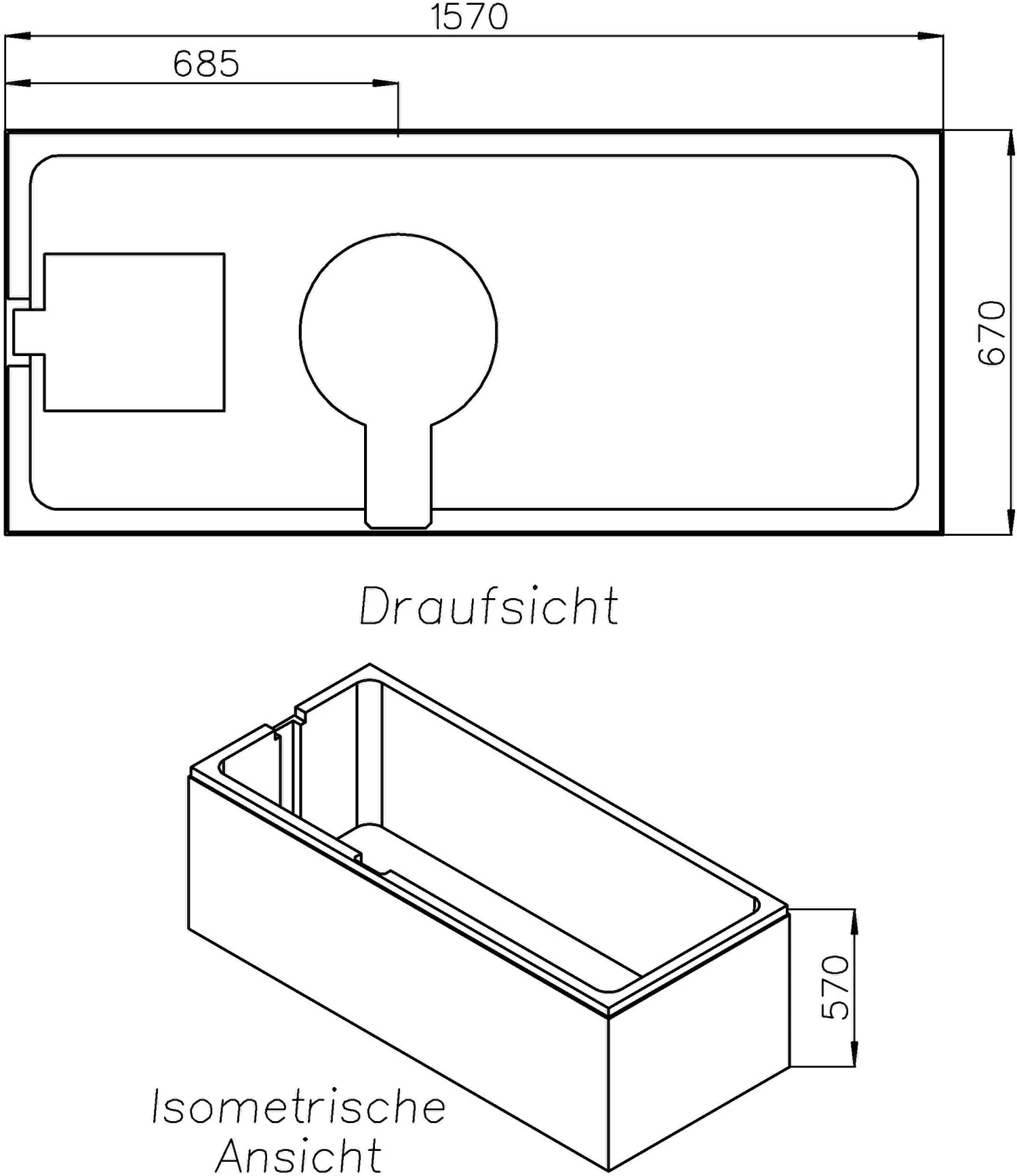 - 160x70cm, Überlauf hinten, Höhe 57cm