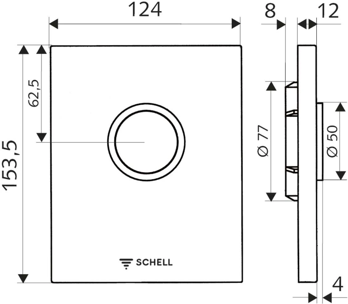 SCHELL WC Betätigungsplatte EDITION Kunststoff chrom SCHELL WC Betätigungsplatte EDITION Kunststoff chrom SCHELL WC-Betätigungsplatte EDITION Design-Betätigungsplatte für SCHELL WC- Wandeinbau-Spülarmatur COMPACT II Fertigbauset WC-betätigungsplatte COMPACT II inklusive Selbstschlusskartusche Lieferumfang: Betätigungsplatte mit Drucktaste f 1 Hauptsp Montagerahmen Mechanische Kartusche mit automatischer Düsenreinigungsnadel Einsatzbereich / technische Daten: Spülmenge einstellbar 4,5 bis 9 l Spülstromregulierung mittels Stauscheibe Werkstoff: Frontplatte aus Kunststoff
